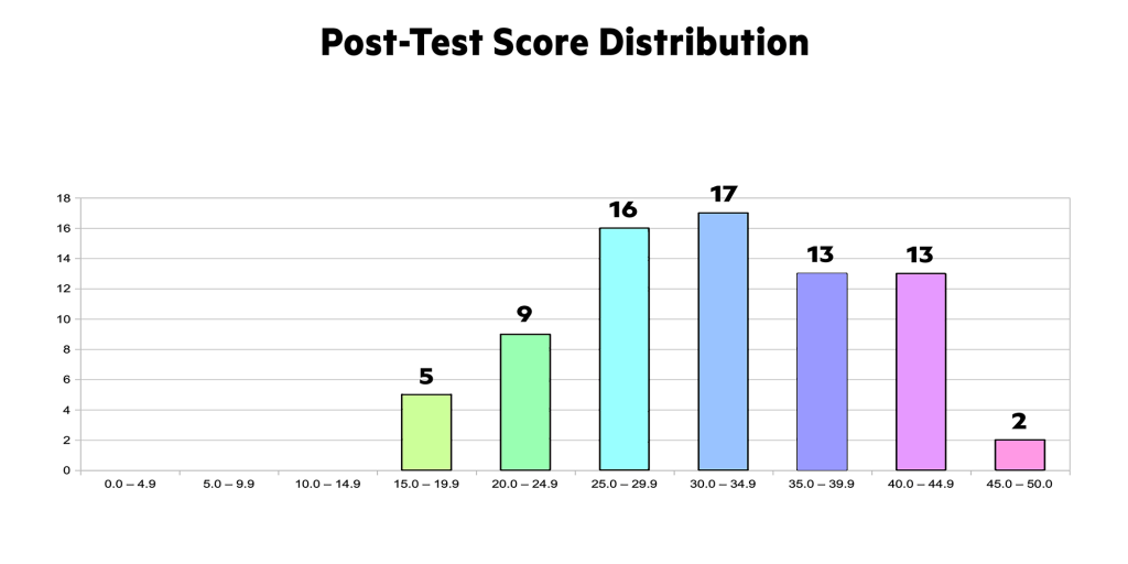 Looking at the pre-and-post test scores, the overall student average raised by 7.9%, which was significant to the p < 0.0005 level for a one-tailed paired t-test. Interpreted, this means that students really did learn about space science between taking the pre-test and the post-test. Since I did not have non-project comparison groups, it is impossible to say whether this gain is due to the project (qualitative data supports this) or just due to other learning or maturation. I will need comparison groups in the final dissertation research. No teachers wanted to do a non-participatory control group.