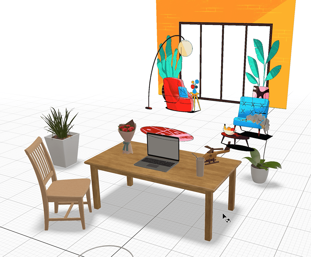 You could use SketchUp to build the structure of a virtual museum, then fly the camera through to take renders of the interior displays from different angles. These images could be stitched together in Wick Editor to make a virtual museum program on a science topic of your choice, such as a tour of the periodic table of the elements.