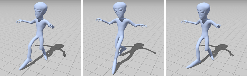 This skeleton of bones and joints is called a “rig” in 3D modeling and the process of building the bones, attaching them to the polygons, and assigning which polygons are influenced by which bones (the weighting of the bones) is called “rigging.” If you watch the end credits of any 3D animation or movie with extensive Computer Graphics Inserts (CGI), you will see separate teams working on the modeling, the texturing, the rigging, and the final animation or setting the keyframes for moving the rig.