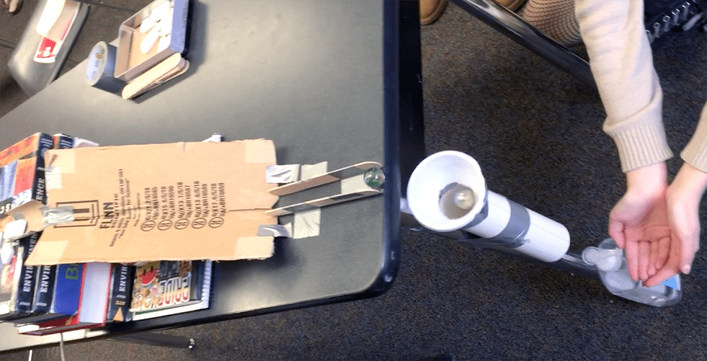This year we are just beginning this project. I presented a series of YouTube videos to them on the first day to provide excitement and establish requirements. For example, we look at the Rube Goldberg video created by OK Go for their song “This Too Shall Pass” and continue to the parabolic flight “vomit comet” video for “Upside Down and Inside Out” and the extremely slowed down video for “The One Moment.” I show the TEDtalk video for OK Go on how they find new ideas. I show elaborate marble run machines, a hand cranked marble run/music box machine, and even the squirrel maze videos by Mark Rober.