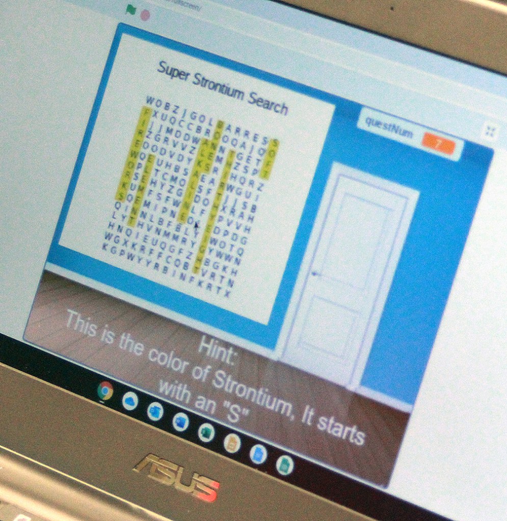 My students have chosen their own elements and created games, such as this Bismuth Belly Buster game where they have to assemble a molecule of bismuth subsalicylate (the active ingredient of Pepto Bismol), or the game at right which is a word search about strontium. Ultimately I hope to develop a VR game of Mendeleev’s Maze. It could contain much of a high school first year chemistry class in one game.